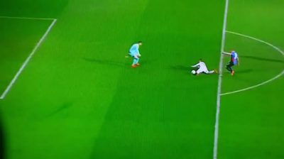 St Tet sem s brankářem, fotbalista sklouzne na trávě, omílání lícem dolů. Ale míč se stane jít správným směrem, což má za následek sítí. Skupina, Rapid Vídeň, nakonec vyhrál český Viktoria Plzeň 2-1.