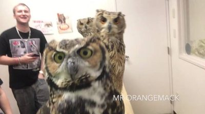 Plný zvědavosti, kroutí hlavou všemi směry. Tato reakce se běžně vyskytují v sovy při snaze pochopit obrázek. S pohybem hlavy zlepšuje vnímání hloubky na co vidí, Pokud jde o 3D objektu.