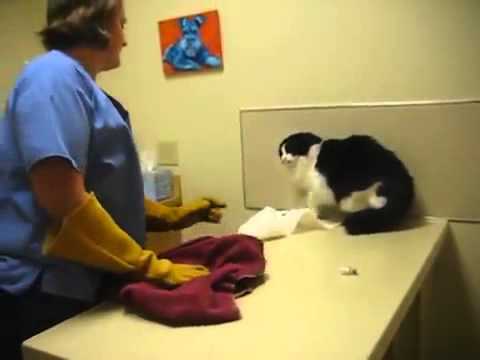 Velmi eyexapti kočka rozčiluje na veterinární klinice v době očkování.