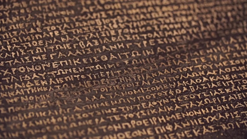 Rosetta Stone je jedním z nejslavnějších archeologických nálezů v historii: Je to kamenná deska 2. století př.. od granodiorit, odvozené od chrámu Ptolemaios v. v Egyptě a přivést rytou nápis ve dvou jazycích (Egyptské a řecké). Význam tohoto objevu je velmi velké, Jak pomohl v luštění egyptských hieroglyfů.