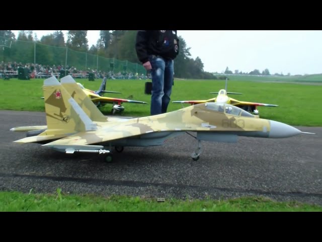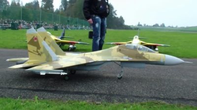 V demonstraci bezpilotní letoun, muž z improvizovaných ukázkový model stíhačky Su-27, s proudovým motorem.