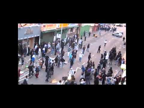 Scény, které rozzuřený. Vzbouřenci v městě London Croydon pryč s násilím kolemjdoucí ze skútru a puku.