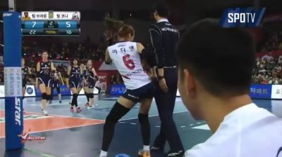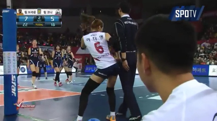 19 rok starý boleϊmpolistria Lee Da-Yeong bavil publikum tančí po každém bodu, během zápasu All-Star v korejské lize.