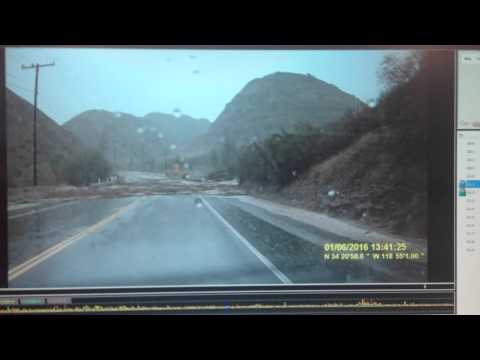 Matka příroda mluví hlasitě. Blesková záplava trosek na Westbound California Highway SR 23 (Grimes Canyon) od Fillmore do Moorpark.