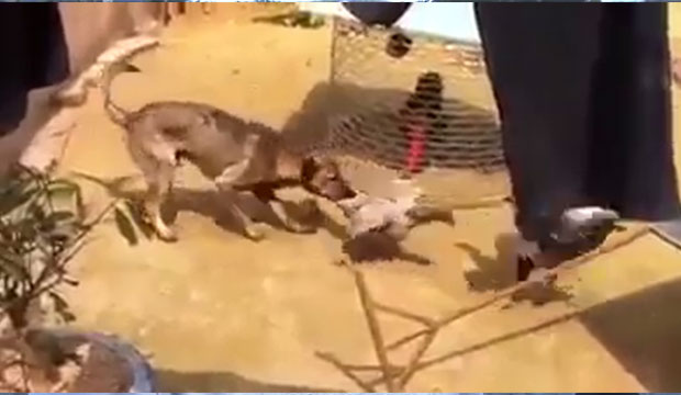 Na farmě v Viet Nam, rvačky vypukne v kurníku mezi dvě kuřata. Slepice na kohout, a pes se snaží oddělit je odtáhla slepice.