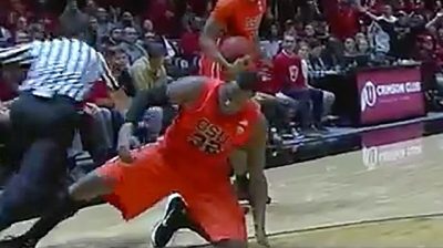 V závodě šampionátu College v USA mezi státem Oregon a Utah, hráč Oregon, Německý Reid,se potápět na míč a rozšiřuje jeho pravé nohy, uvedení zakopnutí na rozhodčí. Reid dostal dvě technické tresty a byl vyřazen ze hry.