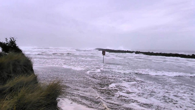 Ve městě Coos Bay v Oregonu, muž s kamerou zaznamenává bouře, Když ho utíkat zrádné vlny přinutí. Když pak se objem vody, která prochází před kamerou, spíše obhájil!