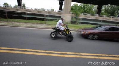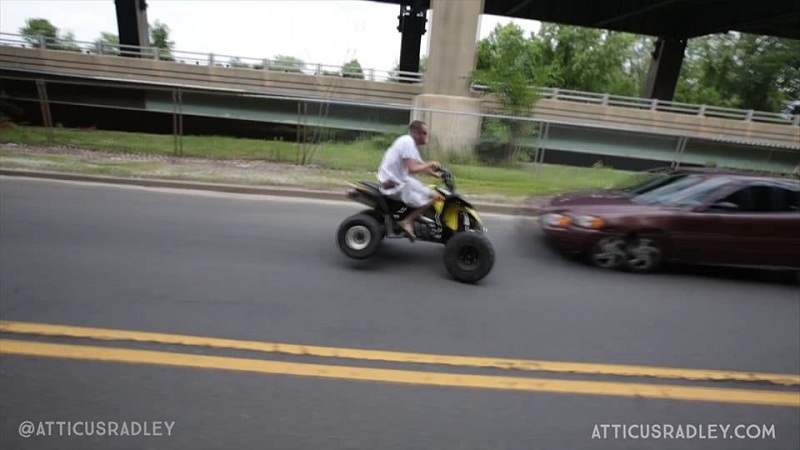 Léto 2015 ve Waterbury v Connecticutu (Spojené státy americké), Muž na ATV (Prasnice) bez helmy, jen s kraťasy a žabky, měl skvělý nápad, jak udělat wheelies na ulici procházející Nadcházejí. Ale skrývá přirozené selekce a jede v protisměru auto nebude bránit se mu vyhýbat v čase, vráží hlavou. Naštěstí pro ‘ to, utekl s jen pár drobných poranění.