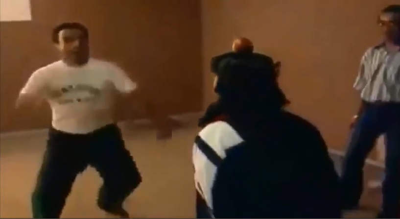 Učitel bojových umění v Turecku snaží ukázat dovednost, vykopnout jablko z hlavy mathitrias z. Naštěstí jí nebolelo vážně.
