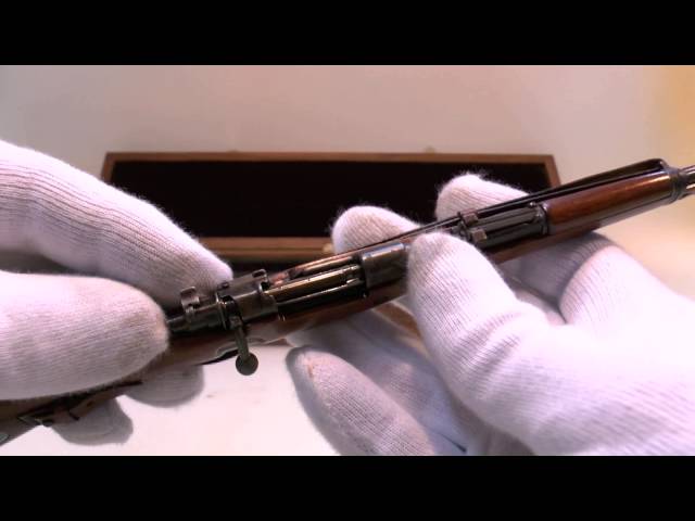 Puška Mauser K98 WW2, v sběratelskou miniaturní, která funguje stejně jako skutečné.