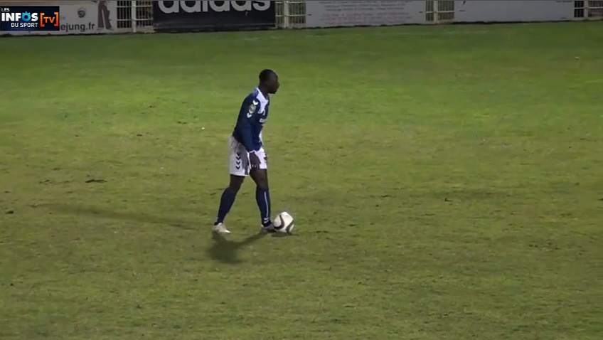Amatérský závod mistrovství ve Francii mezi Schiltigheim a městě Biesheim, hráč městě Biesheim tropí míč blíže k cíli dříve, než spustíte faul, jako rozhodčí se zabývá zdi.