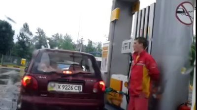 Dívka u čerpací stanice