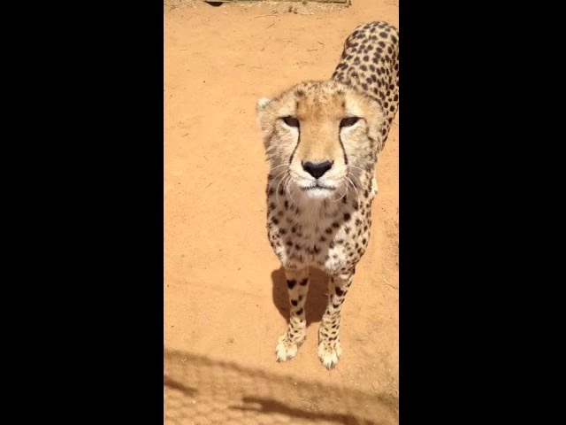 V Zoological Park, Cheetah niaoyrizei čeká na nějaké jídlo od návštěvník.