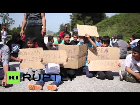Skupina uprchlíků blokován E75 dálnice spojující Řecka a Makedonie poblíž Idomeni v pondělí, požaduje, aby mohli pokračovat v cestě do západní Evropy.