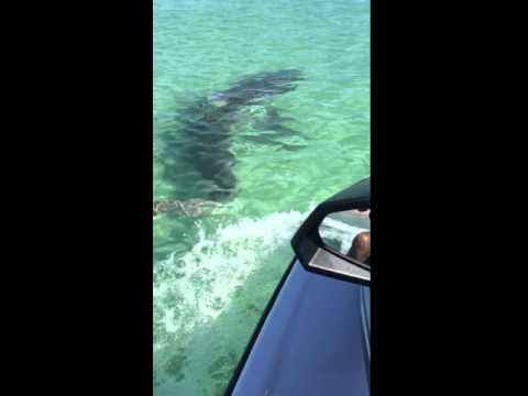 „Moje žena a já jsme byli na našem vodním skútru Yamaha FX Cruiser na turné po západní straně ostrova Fraser., Všimli jsme si, stín ve vodě a v byl poměrně velký žralok. Rozhodli jsme se dostat blíž k brát nějaký videozáznam a jasně jsme se dostali trochu příliš blízko! Nikdo nebyl zraněn, i když vodní skútr utrpěl drobné oděrky v místech, kde se žralok dotkl lyže.