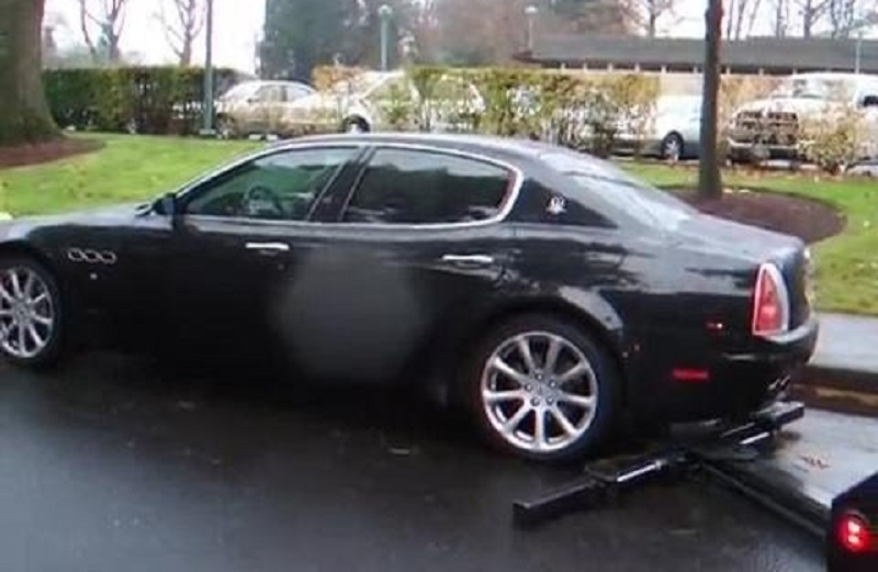 Jeřáb v Oregonu v USA výtahy a odebere Maserati v pouhých několika sekund, Poté, co majitel měl mnoho neplacených hovorů.