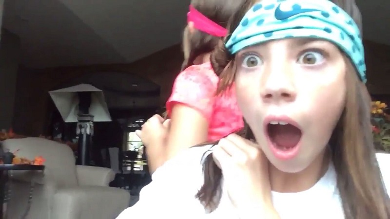 Tři dívky provádět vlasy kurz před kamerou, kočka se rozhodne vylézt na čtení lampa za nimi. Kočka bude držet s krytem hlavy lampy a malé holčičky se začínají křičet.