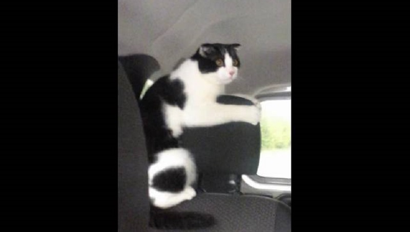 Reakce kočka, který jde poprvé svézt uvnitř auta.