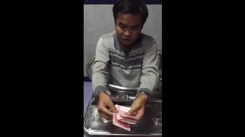 Na policejní stanici v Číně, Muž zatčen za podvody a krádeže. Policista mu dá nějaké bankovky do dlaní a požádat ho, aby ukázal, jak se podaří ukrást účet neohlášenou. Nošení pout, podezřelý bude dělat si poznámky a jeden z nich v dlani skrýt, Zatímco dělá to se počítá.