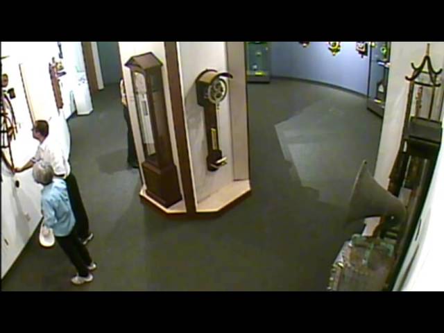 V národním muzeu hodin (Národní muzeum hodin a hodin) Pensylvánie (Spojené státy americké), muž chtěl vidět, až zavřete nástěnné hodiny. Scéna je od 31. května 2016, z bezpečnostní kamery.