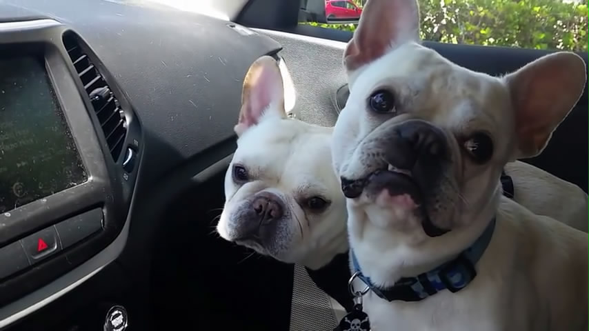 Dvě malé francouzský buldok zbláznit z jejich radost když jeho majitel řekne, že chce jít do parku.