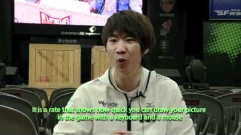 Dva slavní korejští hráči mluví o APM (akce za minutu) což je jednotka měření rychlosti hráče ve videohře. Každý z nich má roční smlouvu až na 150.000 Eura.