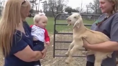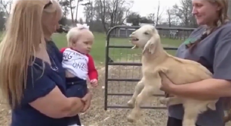 Malá koza a dítě komunikovat svým vlastním způsobem.