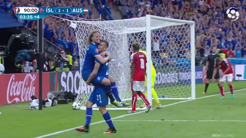Středa 22.června 2016, Island čelí Rakousko na Stade de France v posledním utkání skupiny Euro 2016. Zatímco dva týmy byly svázány se skóre 1-1, na Islandu Arnor Ingvi hráč Traustasona vstřelil vítězný gól v minutě 93o a dal kvalifikace na Islandu poprvé v hlavní turnaj.