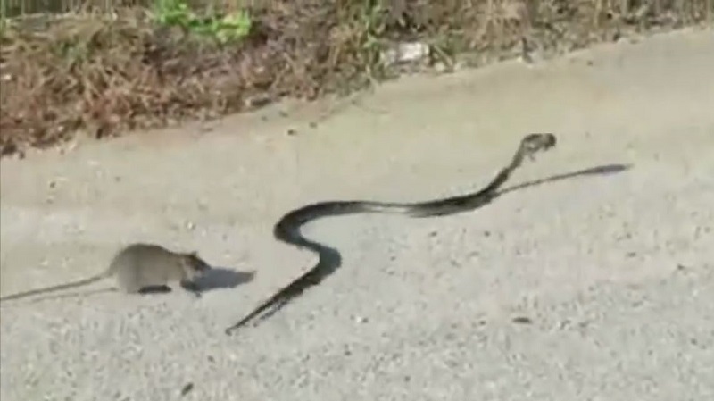 Rat maminka bojuje statečně proti hadí zachránit své dítě. Kousání s hadí ocas moc snaží uniknout kořist, a had opouští Malá krysa při běhu uniknout jako blázen.