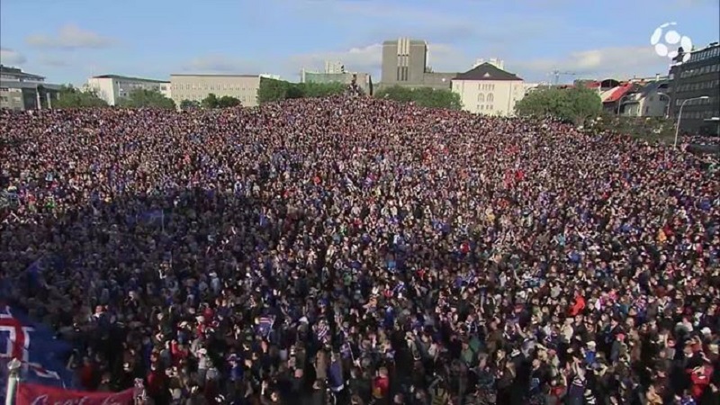 Neděle 03.7.2016, 20.000 Islanďané se sešli na náměstí v Reykjavíku, hlavní město Islandu, Chcete-li zobrazit jejich tým hrát proti Francii. Navzdory tomu, že Island, fanouškům poděkoval hráči, udělat poslední 'Viking Clap'.