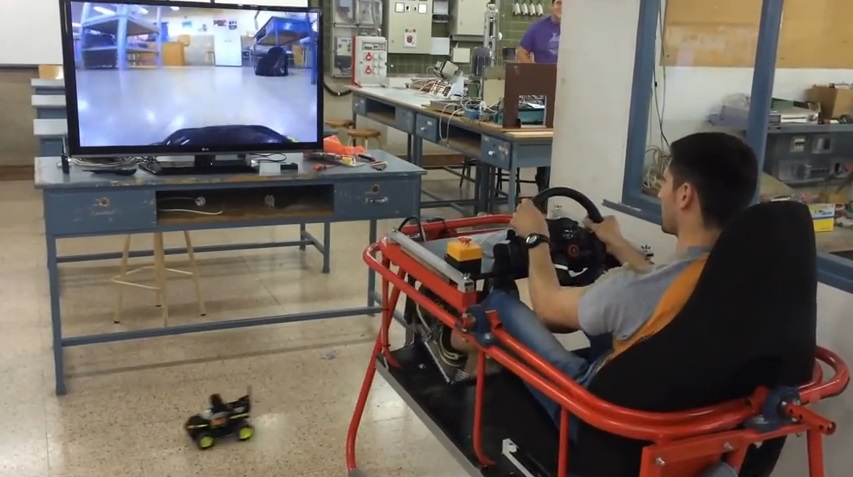 Ze sedadla, volant a pedály, uživateli se zobrazí obraz z kamery, která přenáší přímo ze sedadla řidiče. Systém zpětné vazby simulovat pohyby a vibrací vozidla přímo v sedadla řidiče. Informace z bezpilotní vozidla zotavila z desky Arduino Uno a přeložena do hnutí namísto operátoru.