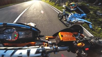 V rakouských Alpách, Skupina motorkářů pořádá neobvyklé konfrontace s vypnutí stroje.