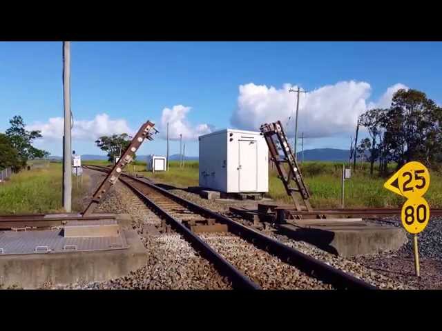 Železniční padací most běží jižně od Rockhampton, město v Queensland, Austrálie. Tento systém se používá k umožnění vlak do diaschissei průnik bez nutnosti snížení rychlosti. V tomto případě, řádek s padací most používá tramvaj, zatímco pevná linka vlakem Maitland – Nový Jižní Wales – Brisbane – Queensland.