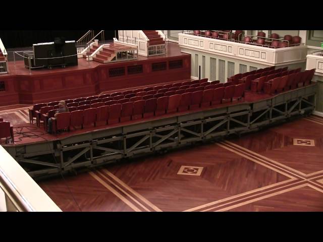 Důmyslný systém automaticky odstraní všechna místa v přízemí odhalit pěkné dřevěné podlahy. Řady sedadel uspořádaných ve skupinách se přesunout na mobilní platformy, které zmizí jeden po druhém v suterénu, budí dojem, že požití z místnosti.