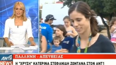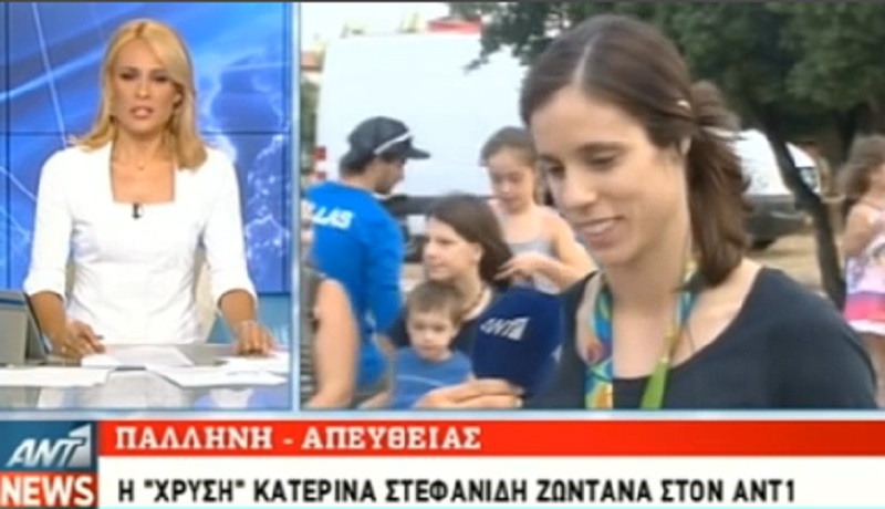 Olympijská vítězka Kateřina Stefanidi správně reaguje novinář ANT1, Když říká, že s úspěchem podařilo udělat novináři a lidé častěji zabývají řecké sport.