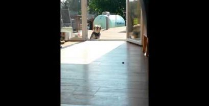 Tento pes skutečně čekají na otevření neviditelné dveře