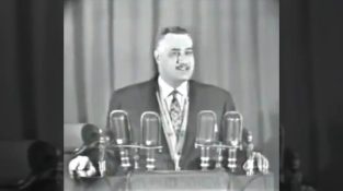 Ve svém projevu v roce 1958, Egyptský vůdce Gamal Abdel Nasser směje s výhledem Muslimského bratrstva, uložení závoj na ženy a islámského práva v celé zemi .