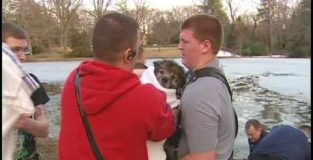 Hasiči zachránili Buh (jméno psa) od zamrzlé jezero v Greenville, USA