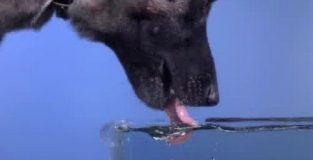 Viz podrobně, jak dojemně pes jazyk přenášel vodu do ústí.