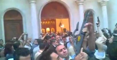 Pohárový zápas v Bosně mezi Zrinjski a Velez. Fanoušci Zrinjski vstupují na hřiště po gólu Veleze a začínají pronásledovat své hráče. Závod byl zastaven.