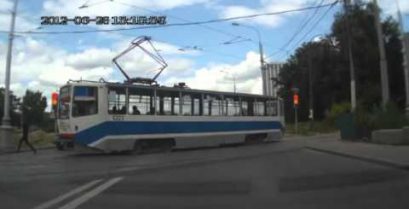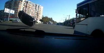 Auto převrátil s filmovou způsobem, Po projetí přes kabel, který spadl na silnici.
