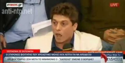 Jeden ze studentů v jednoduché matematické vysvětluje, že život neexistuje v aktuálním stavu ekonomiky v Řecku.