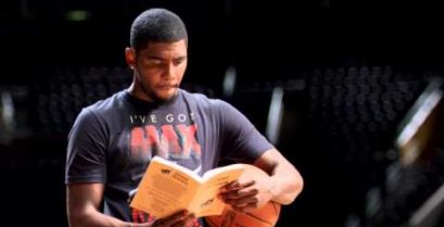 Basketbalový hráč Kyrie Irving hvězd v humorné bazar sportovní potřeby uchovávat.