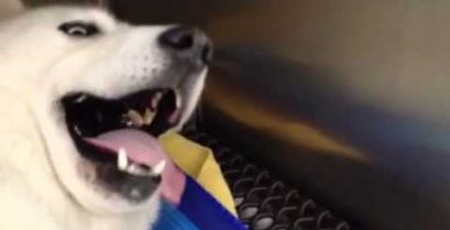 Tento pes St. Bernard má fobie sestoupit po schodech. To nemá problém jít nahoru, ale když musí jít z domu, je problém...
