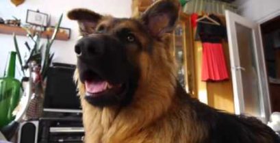 Vtipné reakce německého ovčáka v gabgismatwn zvuky z počítače.