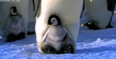 V prvních týdnech jejich života, malé imperiální tučňáky naučit chodit klepnutím na jejich matky nohou.