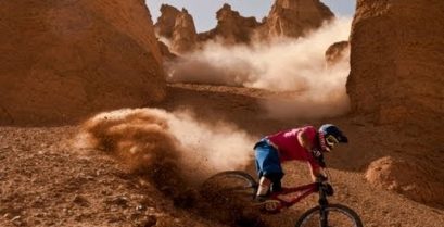 Kolekce velkolepé a nebezpečné kolo sjezdy v poušti Gobi Asie.