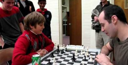 Jedinou 10 let staré Samuel Sevian vyhraje velmi zkušený IM Greg Shahade na rychlý (Blitz) šachová hra, těší 7up.