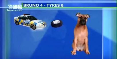 Nejnovější technologie ve službách reportáž, pro reprezentaci incident se psem který bez ustání dagkwne pneumatiky některých automobilů. Z Nového Zélandu televizní kanál.