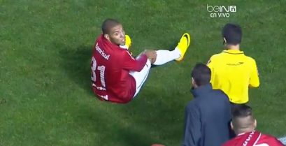 19letý fotbalista brazilský Internacional Maurides, podvrtnutí kolene trpěl jako panigyrize první cíle ve své profesní kariéře. A na horní!